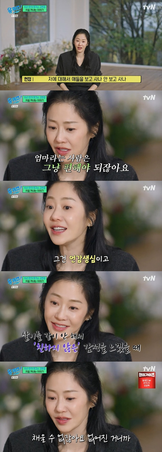 고현정은 자녀들에 대해 최초로 언급을 했습니다.  그녀는 "애들을 보고 사나" 안 보고 사나 궁금해하시는 분들이 많더라. 처음 얘기할 수 있는 건 엄마라는 사람은 그냥 편해야 되잖아요. 아이들과 친하지 않은 것이 이렇게 슬픈 건지 몰랐다. 는 감정을 느끼며 많이 속상해 하며 자녀들과의 만남을 간접적으로 밝혔습니다.