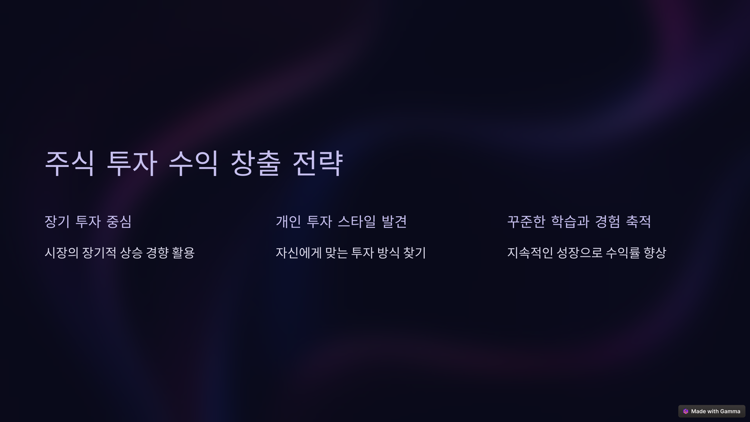 특히, 주식 시장은 장기적으로 상승하는 경향이 있기 때문에, 장기 투자에 초점을 맞추는 것이 중요합니다. 짧은 시간 안에 큰 수익을 올리려는 단기 투자보다는 안정적이고 꾸준한 수익을 추구하는 전략을 선택하는 것이 좋습니다.