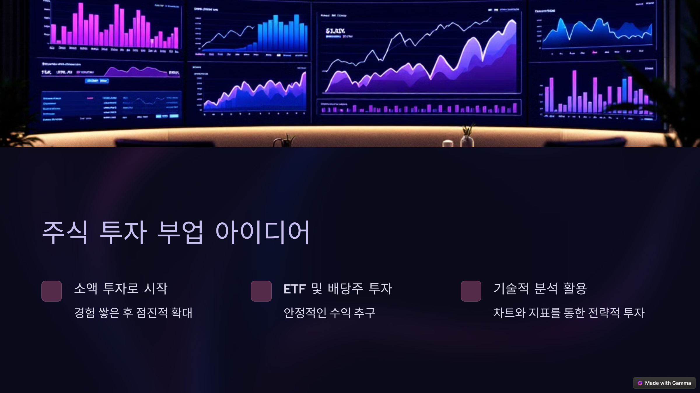 이번 글에서는 주식 투자 부업에 관심이 있는 초보자를 위해, 주식 투자 시작 방법과 주식 부업을 통해 수익을 올리는 다양한 전략을 소개하겠습니다.