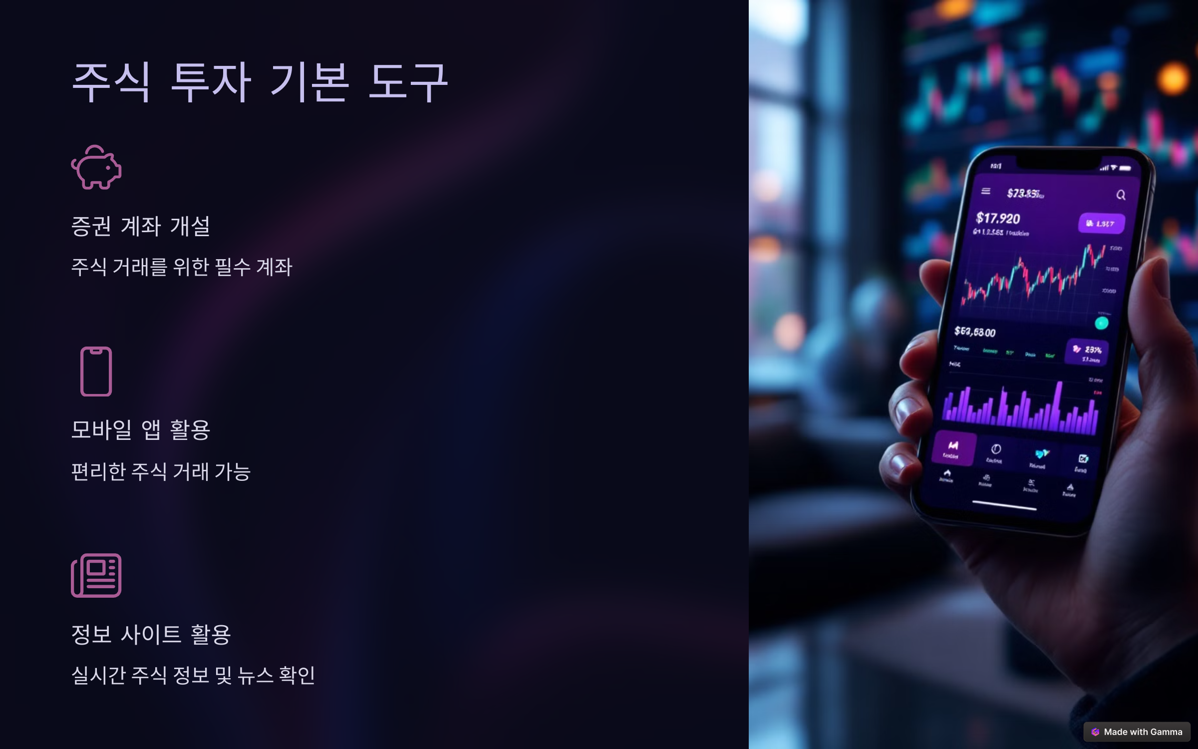 주식 투자에 필요한 첫 번째 도구는 증권 계좌입니다. 증권 계좌는 주식 거래를 할 수 있는 필수적인 계좌로, 대부분의 증권사에서 쉽게 개설할 수 있습니다. 각 증권사에서는 모바일 앱이나 웹사이트를 통해 손쉽게 거래를 할 수 있게 해주므로, 자신의 편리한 방법으로 계좌를 개설하세요.
