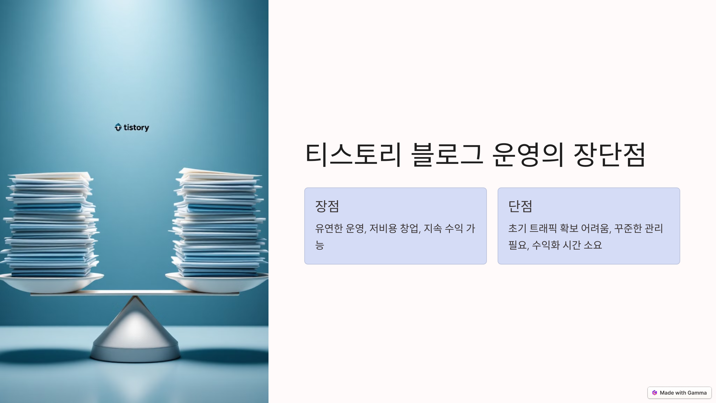 블로그 운영은 꾸준함이 핵심입니다. 좋은 콘텐츠와 꾸준한 관리로 티스토리를 통해 안정적인 부업 수익을 만들어 봅시다!