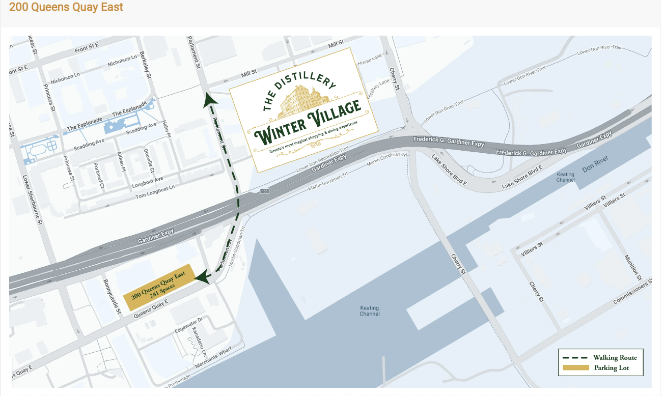 디스틸러리 디스트릭트(Distillery District) 주변에는 여러 주차 옵션이 있습니다. 일부 주차장은 30분당 약 $2.50의 요금을 부과하며, 일일 최대 요금은 $14에서 $18 정도입니다.
