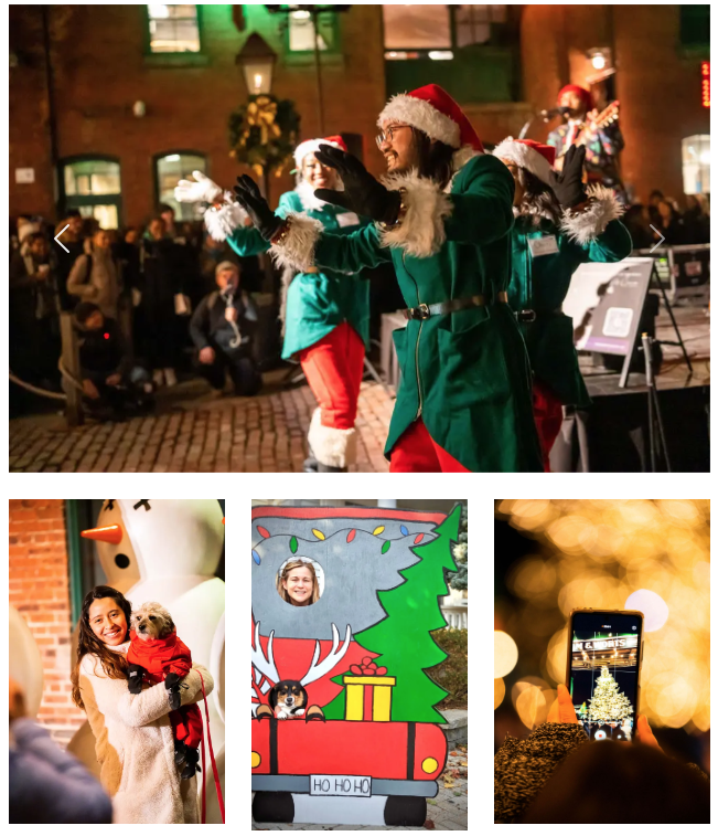 토론토의 디스틸러리 윈터 빌리지(Distillery Winter Village)에서는 다양한 축제 장식과 사진 촬영 명소를 제공합니다.