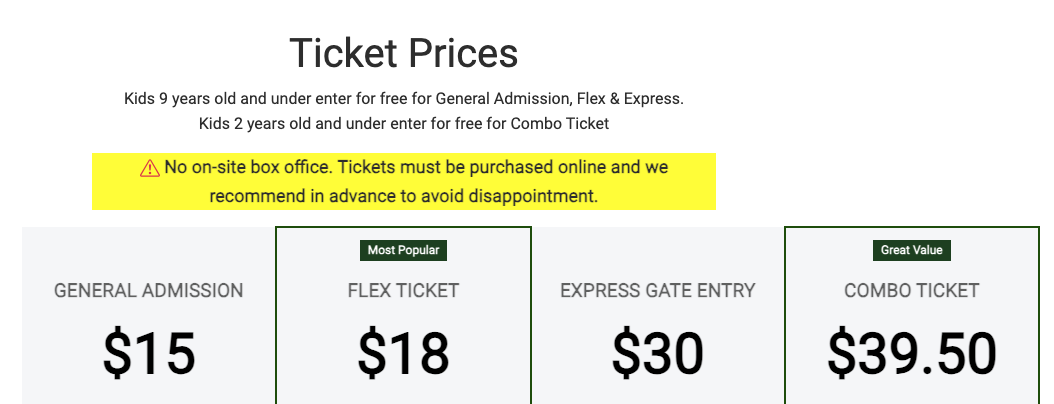 • 티켓 구매: 모든 티켓은 온라인 사전 구매가 필요하며, 현장 판매는 없습니다.
